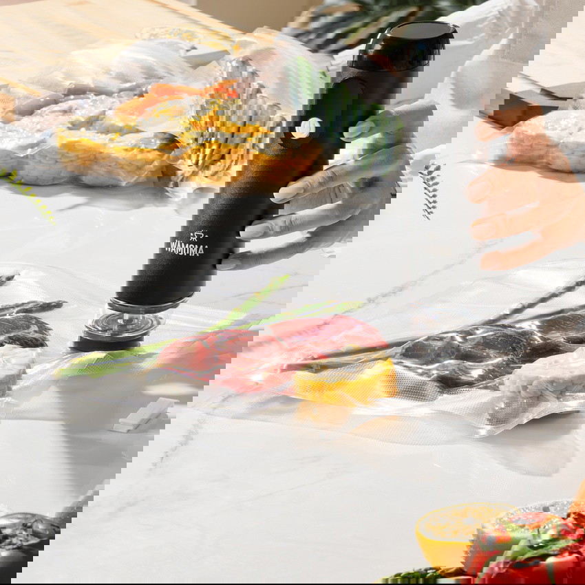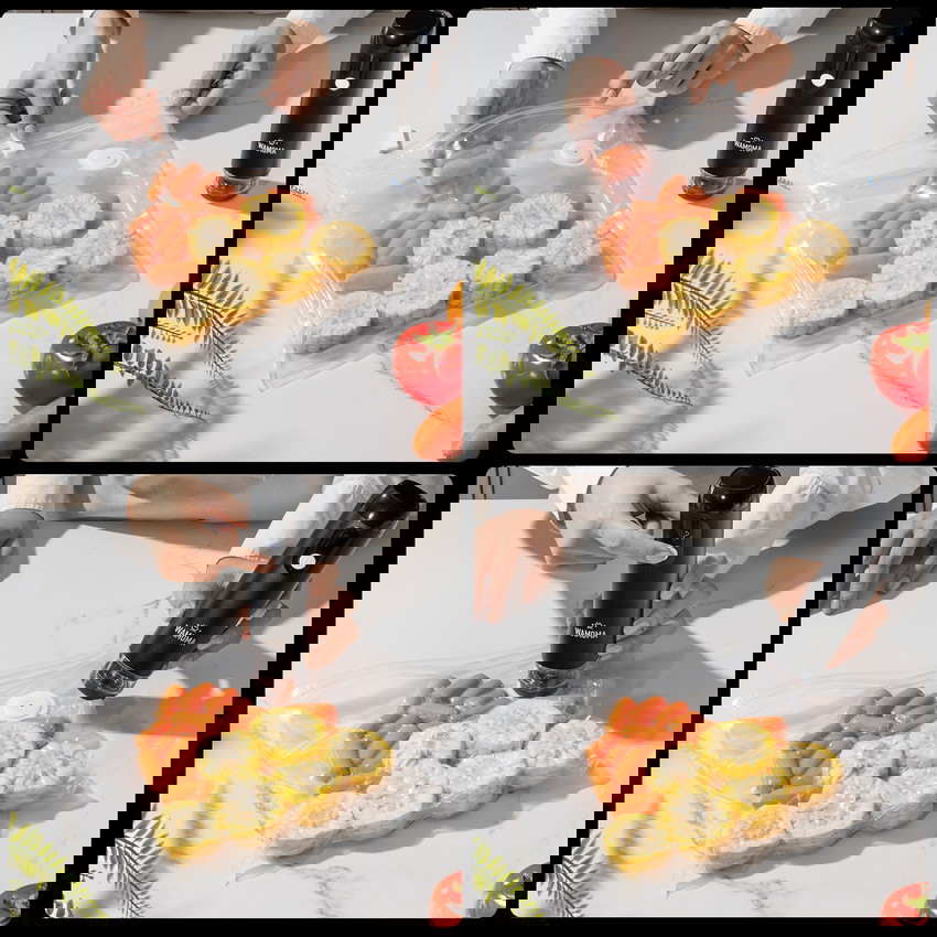User-controlled negative pressure: Press and hold the power button to set the perfect vacuum level for fragile items like fruit or bread.